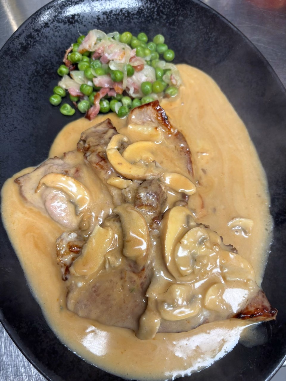 Aux champignons frais avec lardon, oignon et champignon de Paris frais |
