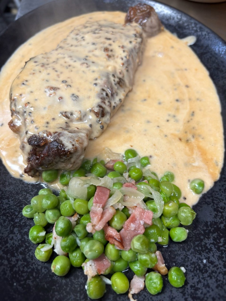 Faux filet de bœuf avec frites et légume - Nature - Sauce Munster - Sauce Poivre Concassé |