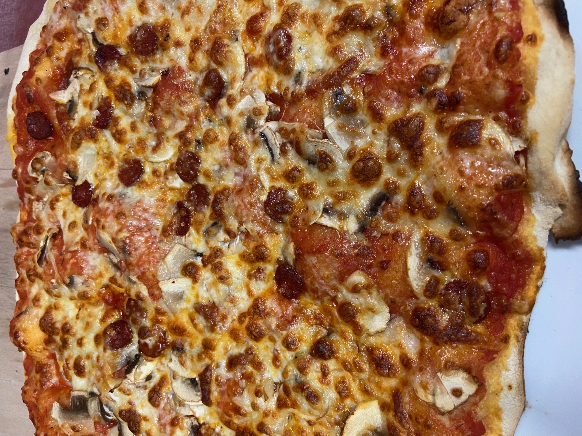 Diavolo avec tomate, merguez, chorizo, champignon et mozzarella |