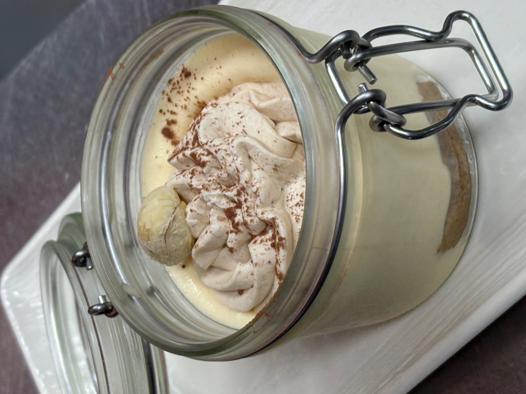 tiramisu à la crème de marron, patisseries de la cheffe Isabelle terminent la dégustation par une note joyeuse.